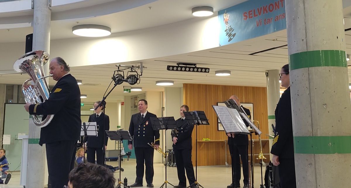 Det var kjekt med besøk av desse greie og flinke musikantane. Dei hadde publikum i si hule hand, og viste fram omtrent alle instrumenta i eit janitsjarkorps. Me håpar nokre av elevane på skulen såg eit instrument dei vil prøve i korpset seinare i vår!